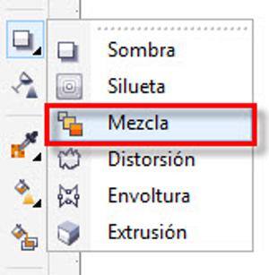 - Haz clic en la herramienta Mezclar (Caja de herramientas > Menú lateral Sombra > Herramienta Mezclar) y arrastra el ratón de un círculo al otro.