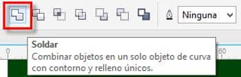 - Con todos los círculos seleccionados, haz clic en el icono Soldar de la barra de propiedades.