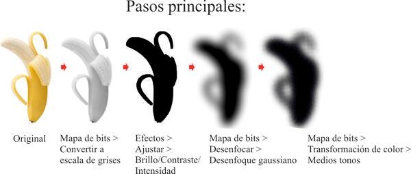 - Fotografía del batido vitaminado: repite los mismos pasos principales que usamos para transformar la imagen de la banana en la imagen de medios tonos (pasos 15 y 16).