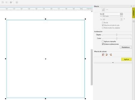 Vamos a divertirnos un poco con las mezclas. Dibuja un cuadrado (mantén presionada la tecla Ctrl con la herramienta Rectángulo) y cambia el color del contorno (por ejemplo, a azul). Crea un duplicado (haz clic en la tecla + del teclado numérico o usa copiar y pegar) y cambia el color del nuevo cuadrado (por ejemplo, a cian).