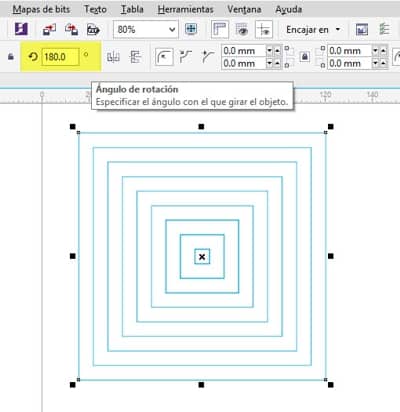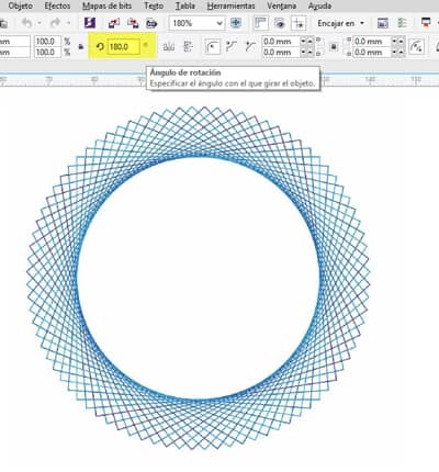 Vuelve a seleccionar el mismo cuadrado y cambia la rotación a 180º. ¡Sí, ahora tenemos un círculo!