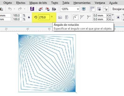 Selecciona el mismo cuadrado y cambia la rotación a 270°.