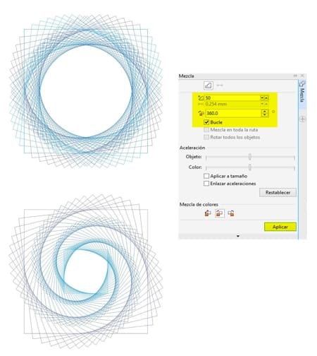 La herramienta Mezclar es una de las funciones más antiguas y útiles de CorelDRAW. La mezcla de objetos implica transformar un objeto en otro siguiendo una progresión de formas y colores. Los resultados son siempre muy interesantes.