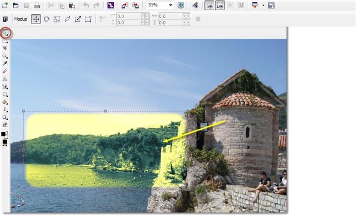 In Corel PHOTO-PAINT X6 beschikt u over verschillende opties voor het toepassen van tooneffecten en speciale effecten op afbeeldingen. U kunt het Effectgereedschap gebruiken om lokaal correcties aan te brengen in kleur en toon. U vindt het Effectgereedschap in de groep van het uitklapmenu Borstelgereedschappen van de gereedschapskist.