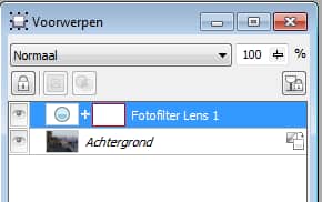 De lens wordt nu in een eigen laag weergegeven in het koppelvenster Voorwerpen.