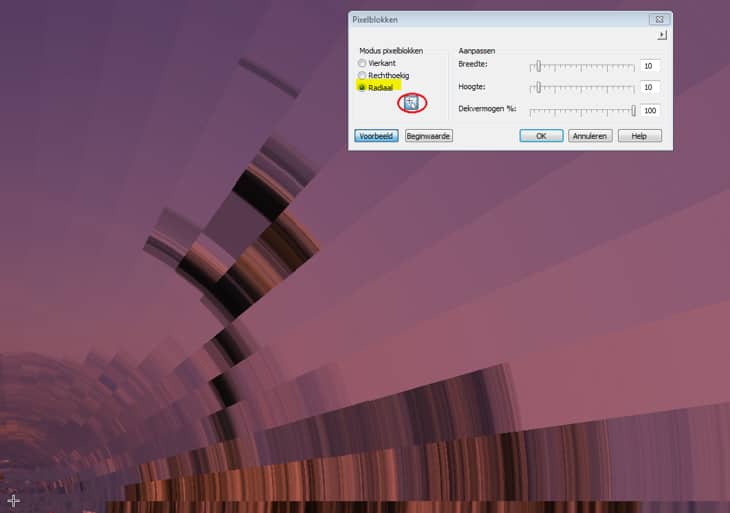 De pixels van de afbeelding worden bij deze lens 'verspreidt', waarmee de schildertechniek van het pointillisme wordt nagebootst.