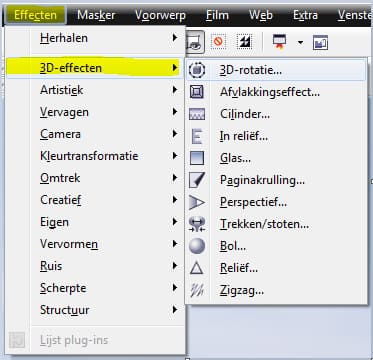 De volgende categorieën met speciale effecten zijn beschikbaar, en elke categorie heeft meerdere effecten: