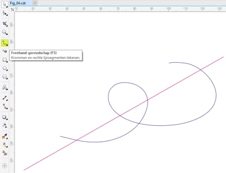 Bij deze oefening gebruiken we twee eenvoudige lijnen die we met het Freehand-gereedschap hebben getekend.