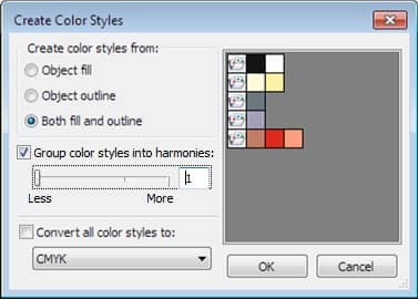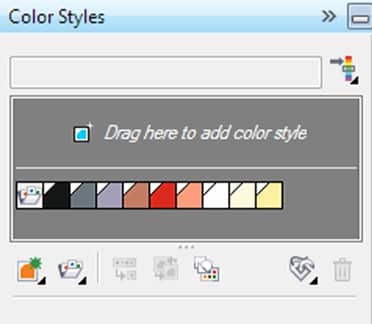 W oknie dokowanym Style kolorów kliknij ikonę Folder harmonii (znajdującą się po lewej stronie pierwszego próbnika kolorów gradientu). Spowoduje to zaznaczenie wszystkich odcieni w gradiencie i połączenie ich w relacje oparte na barwach.