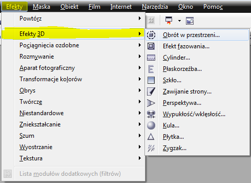 Opcje dostępne w menu Efekty