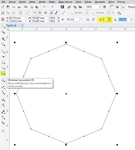 Wielokąt narysowany na potrzeby tego samouczka ma 8 boków (ośmiokąt).