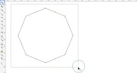 Na pierwszy rzut oka nie będzie widoczna żadna zmiana. Jednak po kliknięciu jednego z węzłów lub ścieżek za pomocą narzędzia Kształt i przeciągnięciu wskaźnika do środka lub na zewnątrz można zauważyć, że boki wielokąta są krzywymi. Dzięki temu można tworzyć różnorodne kształty. Spójrzmy: