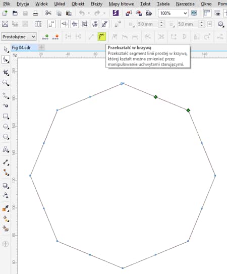 Wielokąt można dalej modyfikować, klikając węzły oraz uchwyty sterujące i je przeciągając.