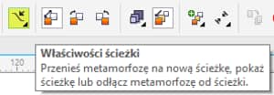 Zaznacz grupę obiektów uzyskanych w wyniku metamorfozy, a następnie kliknij ikonę Nowa ścieżka na pasku właściwości narzędzia Metamorfoza. Wskaźnik zastąpi czarna falista strzałka.