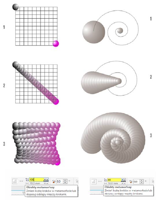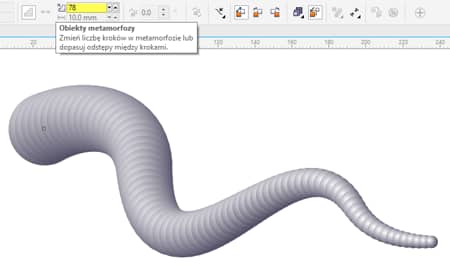 Jeśli chcesz uzyskać lepszy efekt, możesz zwiększyć liczbę kroków metamorfozy lub rozmiar pierwszego bądź drugiego obiektu. Narzędzie Metamorfoza jest wyjątkowo interakcyjne, a wprowadzane zmiany można na bieżąco obserwować.