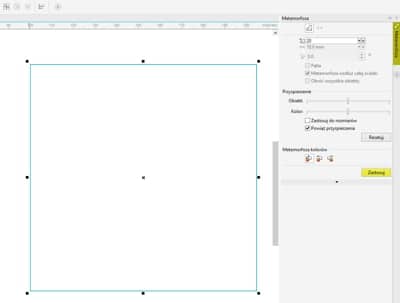 Teraz zaznacz oba kwadraty i z palety efektów wybierz narzędzie Metamorfoza, co spowoduje otwarcie okna dokowanego Metamorfoza. Kliknij przycisk Zastosuj, nie modyfikując domyślnych wartości.
