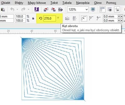 Teraz, przy tym samym zaznaczonym kwadracie, wybierz wartość obrotu 270°.