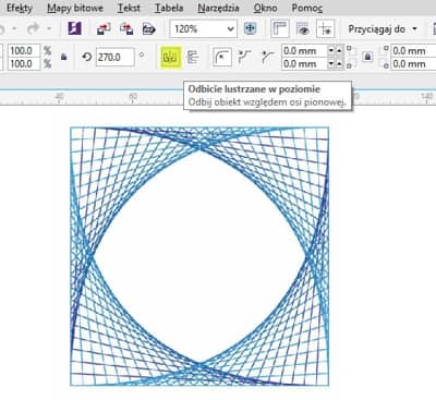 Następnie — wciąż mówimy o tym samym kwadracie — wybierz ponownie opcję odbicia lustrzanego w poziomie.