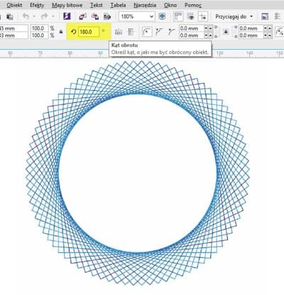 Zaznacz ponownie ten sam kwadrat i zmień kierunek obrotu na 180º. Tak, teraz mamy okrąg!