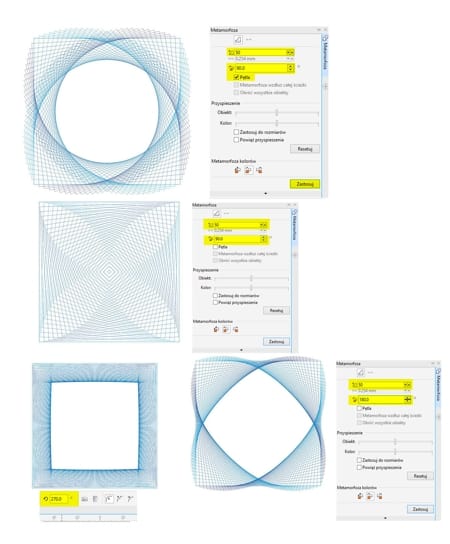 Zmiana kierunku obrotu metamorfozy na 180º spowoduje uzyskanie całkiem innego rezultatu.