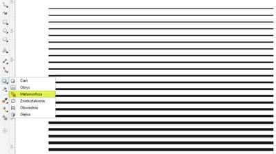 - Skorzystaj z narzędzia Interakcyjna metamorfoza na palecie wysuwanej zawierającej narzędzia Efekt. Następnie przeciągnij narzędzie z jednej linii na drugą (kolejność na tym etapie nie ma znaczenia). Efektem powinien być gradient utworzony z linii.