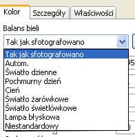 Okno dialogowe wygląda podobnie do okna Pracownia dopasowywania obrazka w programie Corel PHOTO-PAINT, ale jest dodatkowo wyposażone w opcję Balans bieli, której działanie przypomina zresetowanie aparatu przed wykonaniem zdjęcia.