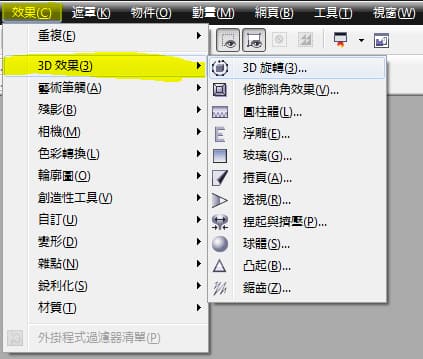 下列是可用特殊效果的類別,各種類別都有數個不同的效果: