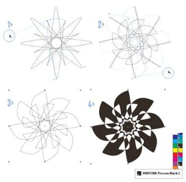 您可能會十分訝異,下列這些形狀都是使用這種技巧建立出來的。若您需要原始檔,請按一下這個影像即可下載範例影像檔* (http://www.corelclub.org/tutoriales/practicas/ejercicio-tutorial-poligonos-corelclub.cdr )。