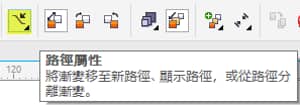 請選擇剛剛混合漸層填色的群組。然後,按一下漸變工具屬性列中的新增路徑圖示。此時,游標應變成一個黑色的彎曲箭頭。