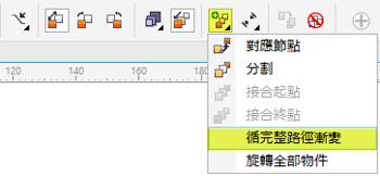 如果您想製作出更精緻的物件外觀,請選擇一組全新的混合群組,並在屬性列上更多漸變選項。核選循完整路徑漸變核取方塊。