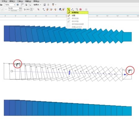 漸變工具是 CorelDRAW 最早、最實用的功能。漸變透過形狀和色彩變化,將物件變形成另一個物件。但結果十分有趣。