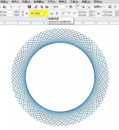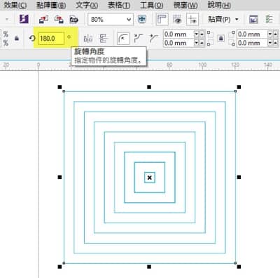 再次選取相同的正方形,變更旋轉至 180º。沒錯,圓形成形了!