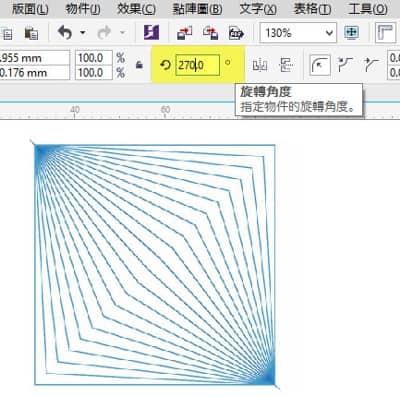 一定選取同樣的正方形,選擇變更旋轉至 270°。
