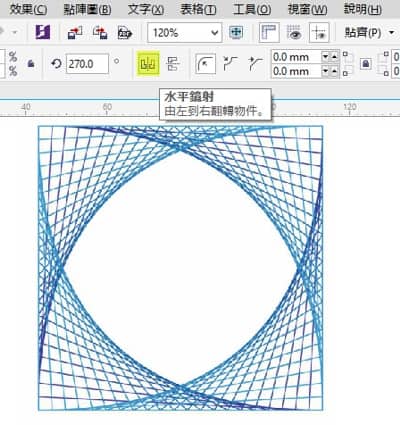 - 再此選取相同的正方形,接著選擇水平鏡射。