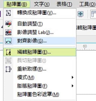 僅選取向量物件並將其轉換為點陣圖形。請點按:點陣圖 > 轉換成點陣圖。將物件轉換為點陣圖後,請繼續點按:點陣圖 > 編輯點陣圖以在 Corel Photo-PAINT 中開啓該圖形。