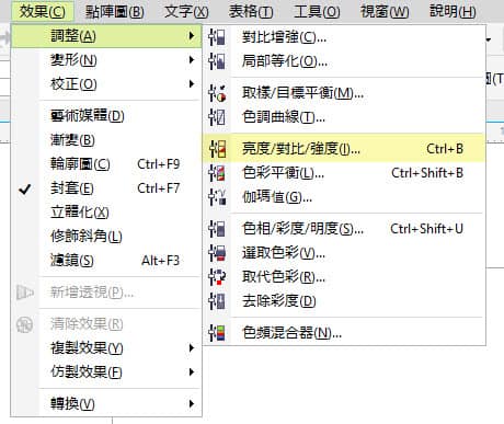 現在,請選取單一物件 (即選擇取氣球或文字) 並調整其亮度/對比/強度。請點按:效果 > 調整 > 亮度/對比/強度。